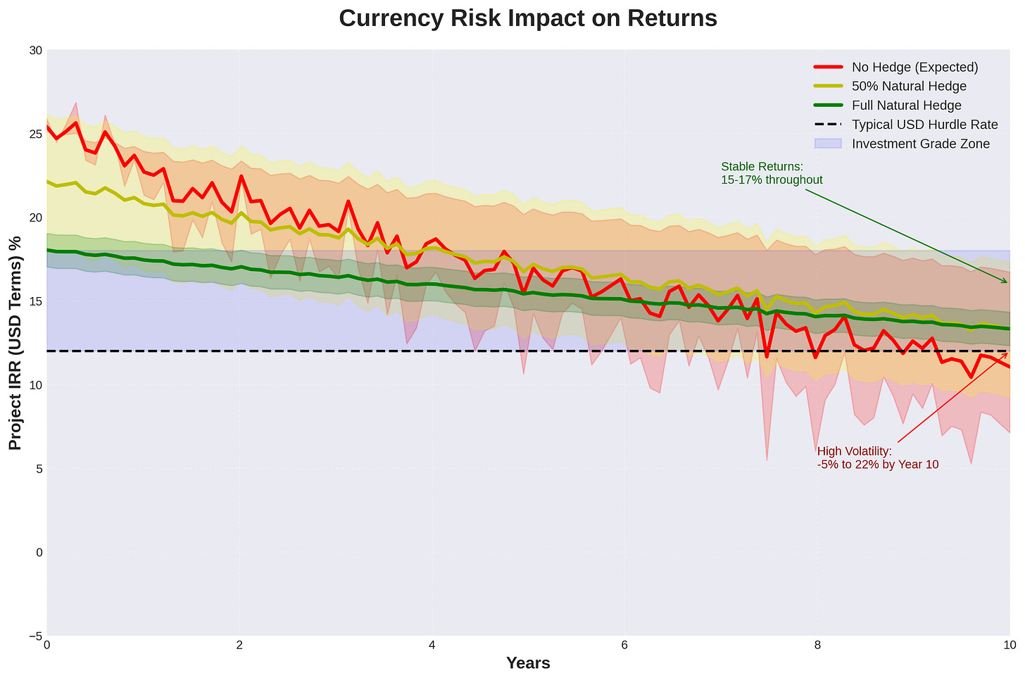 Smart developers are exploiting the gap between local currency returns (25-35%) and hard currency expectations (12-18%) through sophisticated hedging. Those who master this capture 30-50% value uplift.