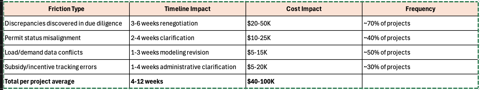 After months of analysis, I’ve identified three distinct, quantifiable friction points that kill projects before they ever reach bankability evaluation. I’m calling them preparation friction, verification redundancy, and coordination chaos.
