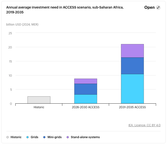 - IEA “Financing Electricity Access in Africa” (October 2024): $15B annual need, $2.5B deployed